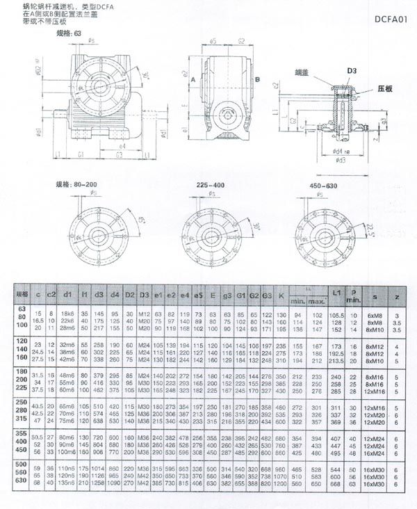 CFA蝸輪蝸桿減速機(jī)具體安裝尺寸如下: