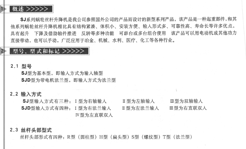 是我公司參照國外公司的產(chǎn)品而設計生產(chǎn)的新型絲桿升降機,該產(chǎn)品是一種起重部件,和其他系列絲桿升降機相比具有結構緊湊、體積小、安裝方便、輸入形式多樣、可靠性高、壽命長等許多優(yōu)點,具有起升 下降及借助軸件驅動,反轉等多種功能,可單臺使用或多臺組合使用,該產(chǎn)品可以利用電動機或者其他驅動裝置驅動,也可以手動,廣泛應用與冶金、機械、水利、醫(yī)療、化工等行業(yè)。